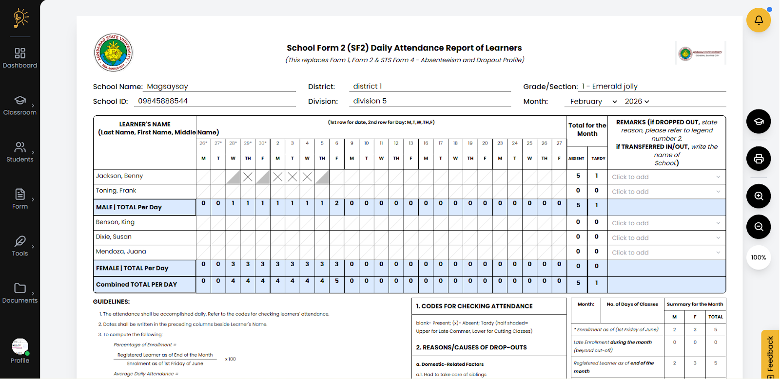 SF2 plays an important role in school reporting and learner monitoring. However, when attendance is recorded and counted manually, the process can easily become time-consuming.