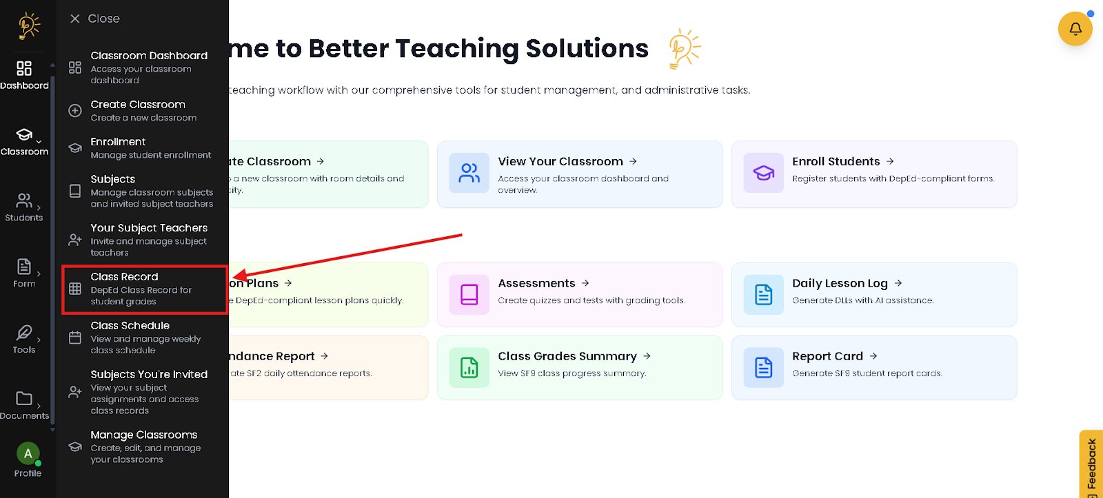 When you enter student scores in this field, the system automatically computes the grades based on your selected classroom, subject, and grading setup. Once everything is properly configured, you can simply input the scores and the calculations happen in real time. You don’t need to compute anything manually—your grades are generated accurately and aligned with DepEd standards.