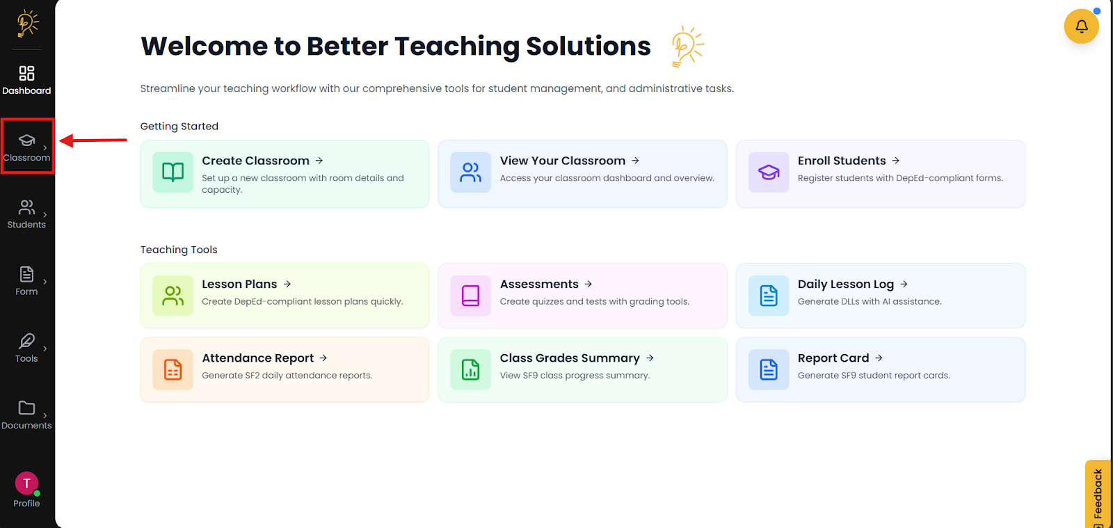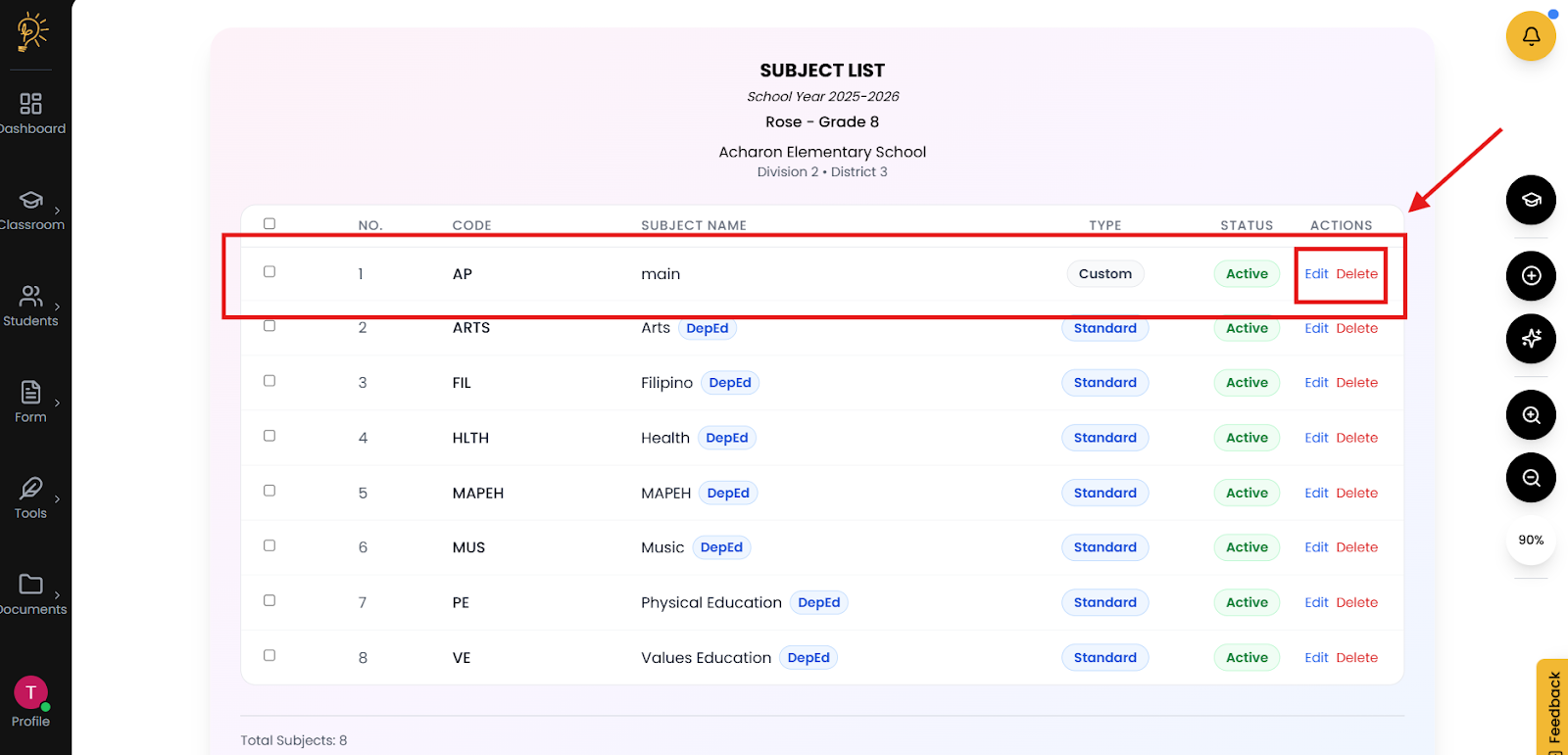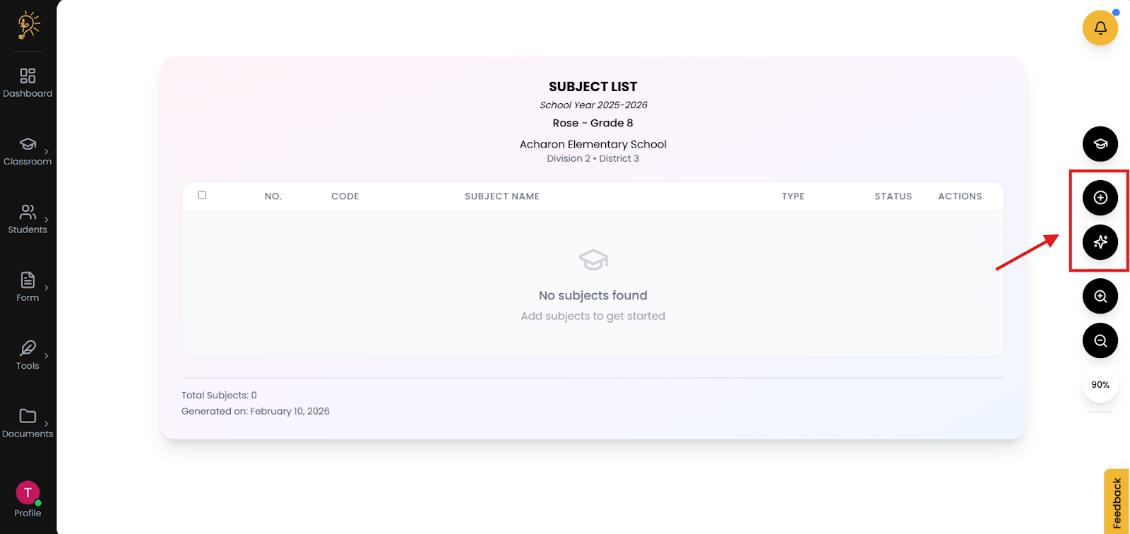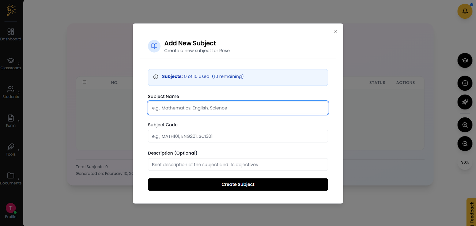 Before you begin assigning or managing subjects, please ensure that you have already created a classroom. If you have not yet set up a classroom, please refer to our [ Link to Classroom Management & Creation Tutorial ] for step-by-step instructions on how to get started.