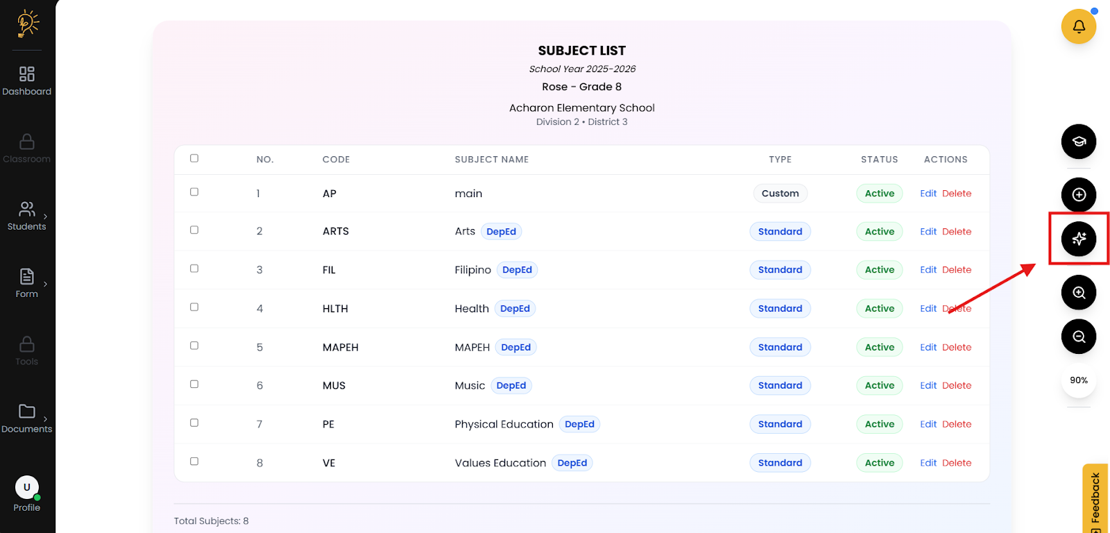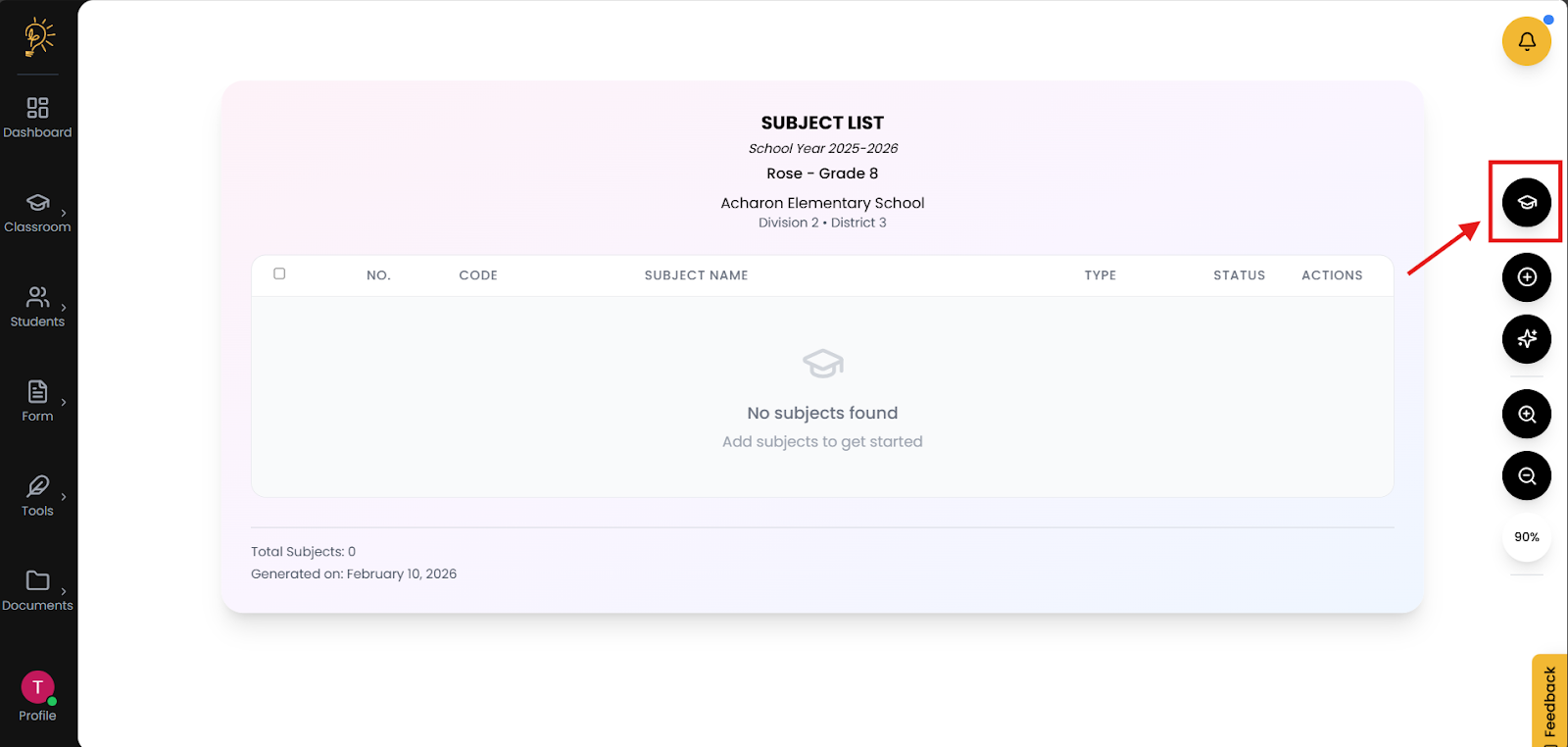 - On the Subject List Page, find the 🎓 Graduation Cap icon (right side).
