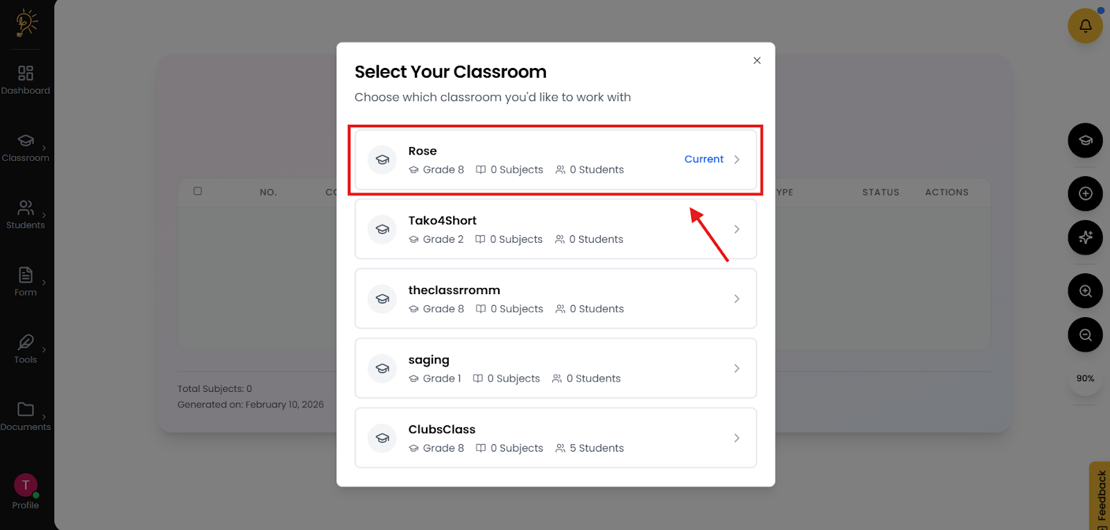 - Confirm you’re in the right classroom by checking the displayed classroom name (or the updated subject list).