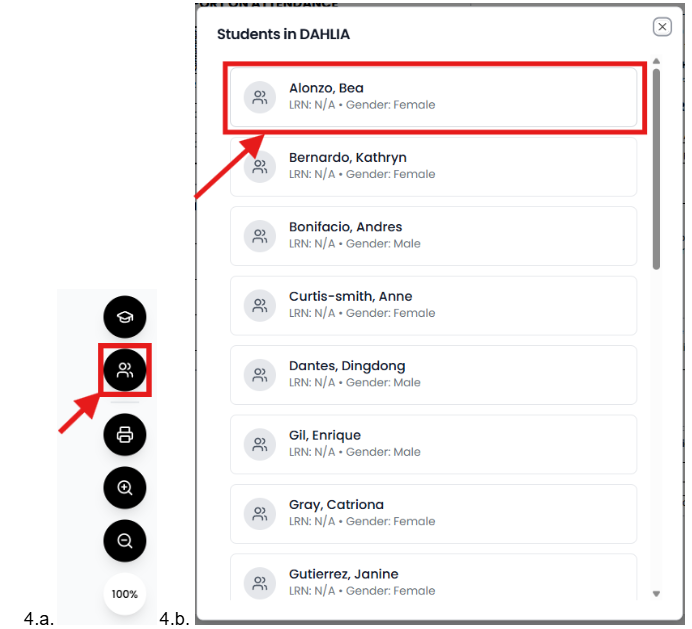 - Click 👥 Select Student, then choose a learner from the list.