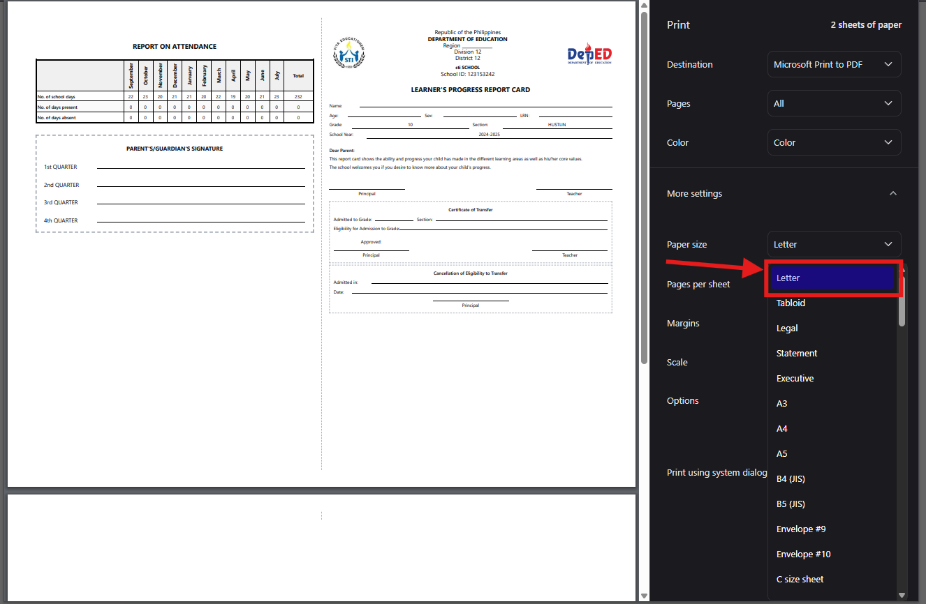 Printing the Report Card