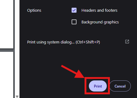 - Print from your browser dialog.