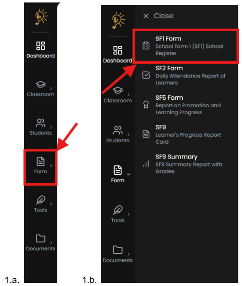 - Go to Forms → SF1 School Register.
