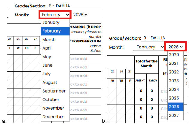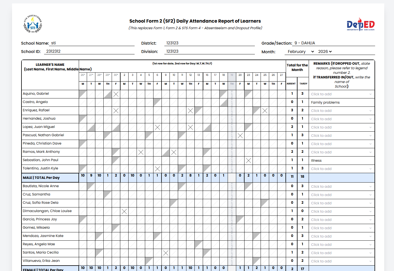 - Go to Forms → SF2 Daily Attendance.